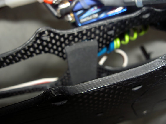 ガタつながりで、バッテリーの上下のガタも結構なもので アッパーデッキの裏に、キット付属のスポンジを張って やりました。 バッテリーを入れるときに、少し渋めなかんじで ホールド感が向上!!
