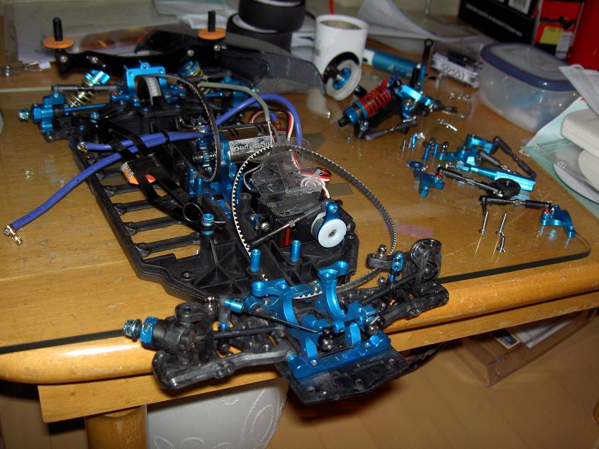 今年のラジも終わり 来季に向けてメンテ開始です。 完全バラの途中で いろいろ発見 まずは相変わらず、ベルトがモーターマウントに擦っています。 斜めから見ていただくと、結構削っているのですが 油性ペンがきれいに剥げて、艶まで出ちゃってます。 ガッツリ削ってみたいと思います。 当然ながら、シャシーの方も擦ってますね。 フロントのワンウェイ 左側が、ガリガリしちゃってます。洗ったけどダメです・・・ まっすぐ走らないのはこれも原因ではと、思います。 そして、一番のショック